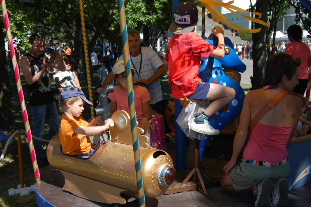Un manège de création entièrement artisanale dont le thème est la mer. Inspiré des écrits de Jules Verne « Vingt mille lieux sous les mers », les enfants seront invités à chevaucher une baleine ou un hippocampe, ils pourront également prendre place à bord d’une chaloupe ou piloter le sous-marin Nautilus.
